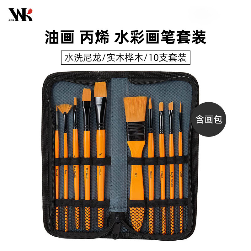 多機能ナイロン毛実木油絵ペン10本セット絵バッグ付き水彩アクリル画筆板ブラシセット