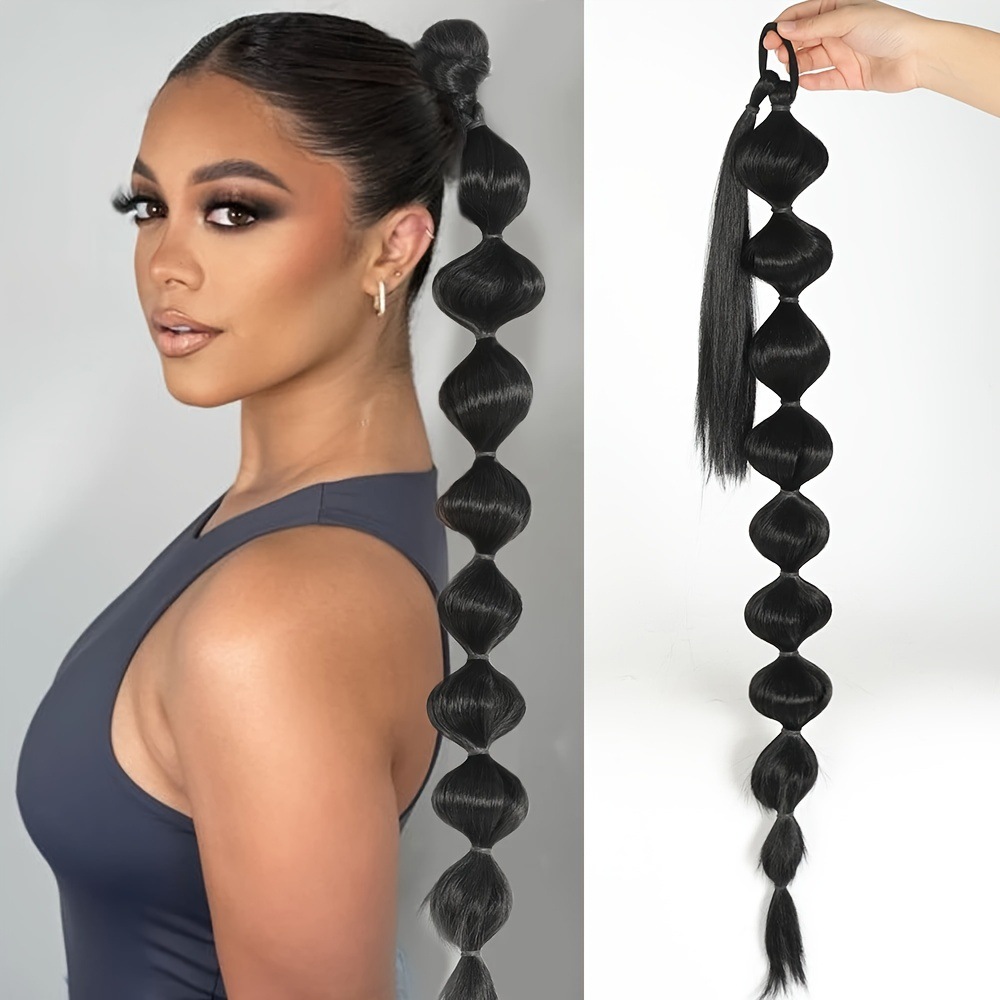 泡ポニーテールのかつら女性欧米の対外貿易の巻き取り式の髪のポニーテールの提灯の泡のお下げのかつらの現物の卸売り
