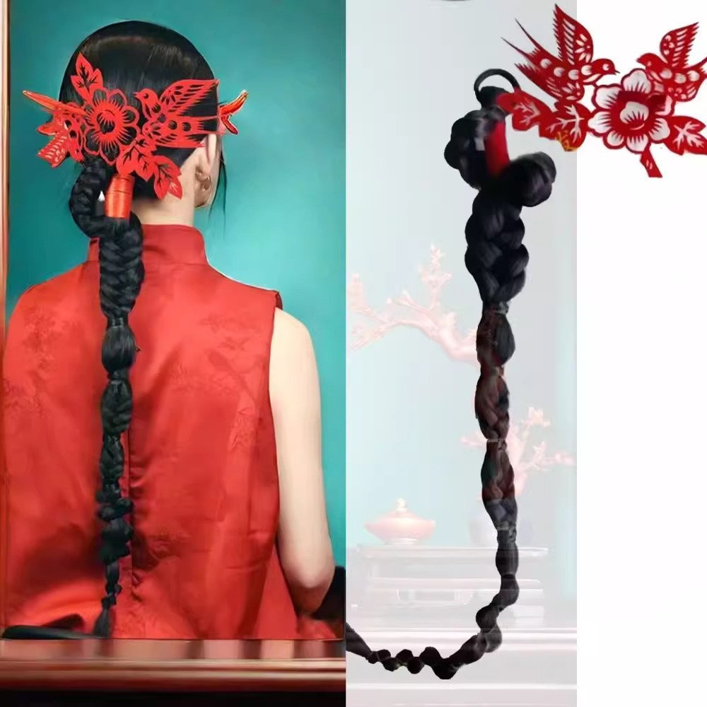 新中国式かつら国風ポニーテールお下げ新婦秀禾国風甘いクールポニーテール撮影スタイル