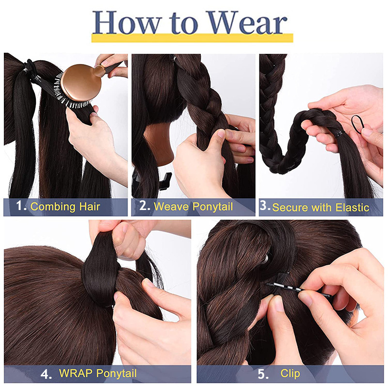 欧米の対外貿易のトウモロコシはかつらのポニーテールの女性のバンド式の化学繊維の高温の糸の偽のポニーテールの工場の現物の卸売りをします。