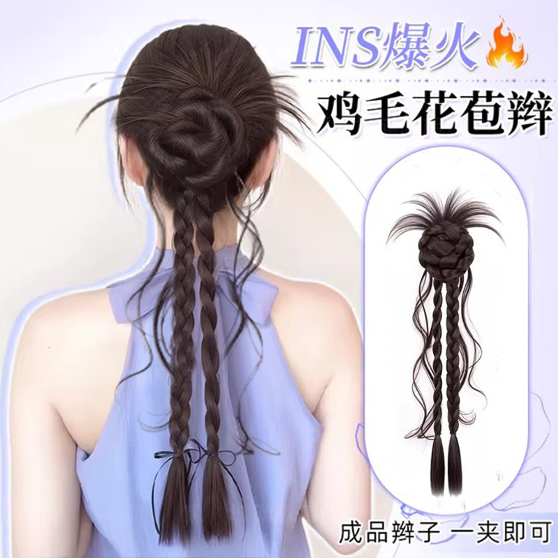 假发马尾辫子女夏日慵懒鸡毛花苞头抓夹甜妹麻花扭扭辫假发辫马尾
