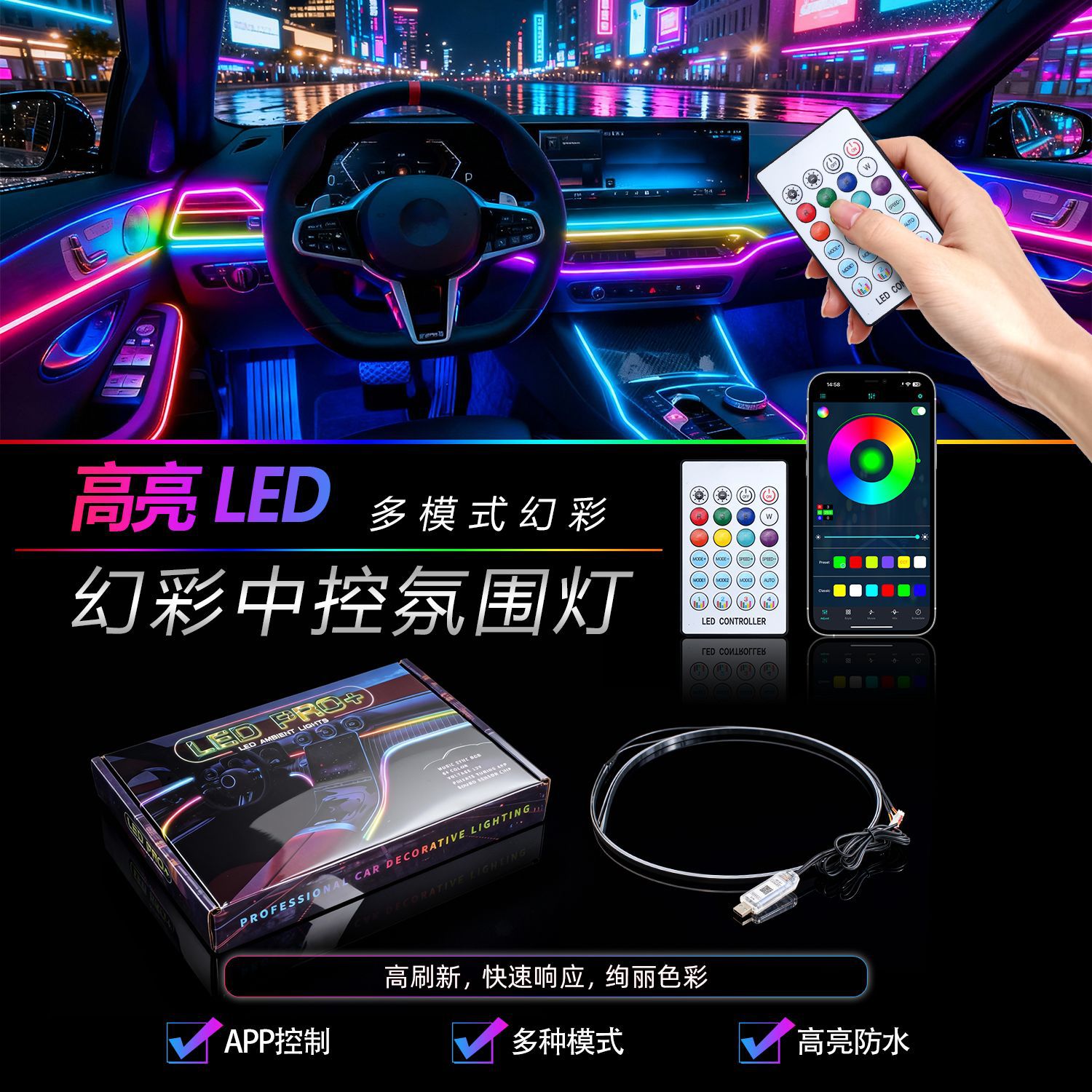 跨境汽车氛围灯幻彩改装LED亚克力中控氛围灯USB免安装流水装饰灯