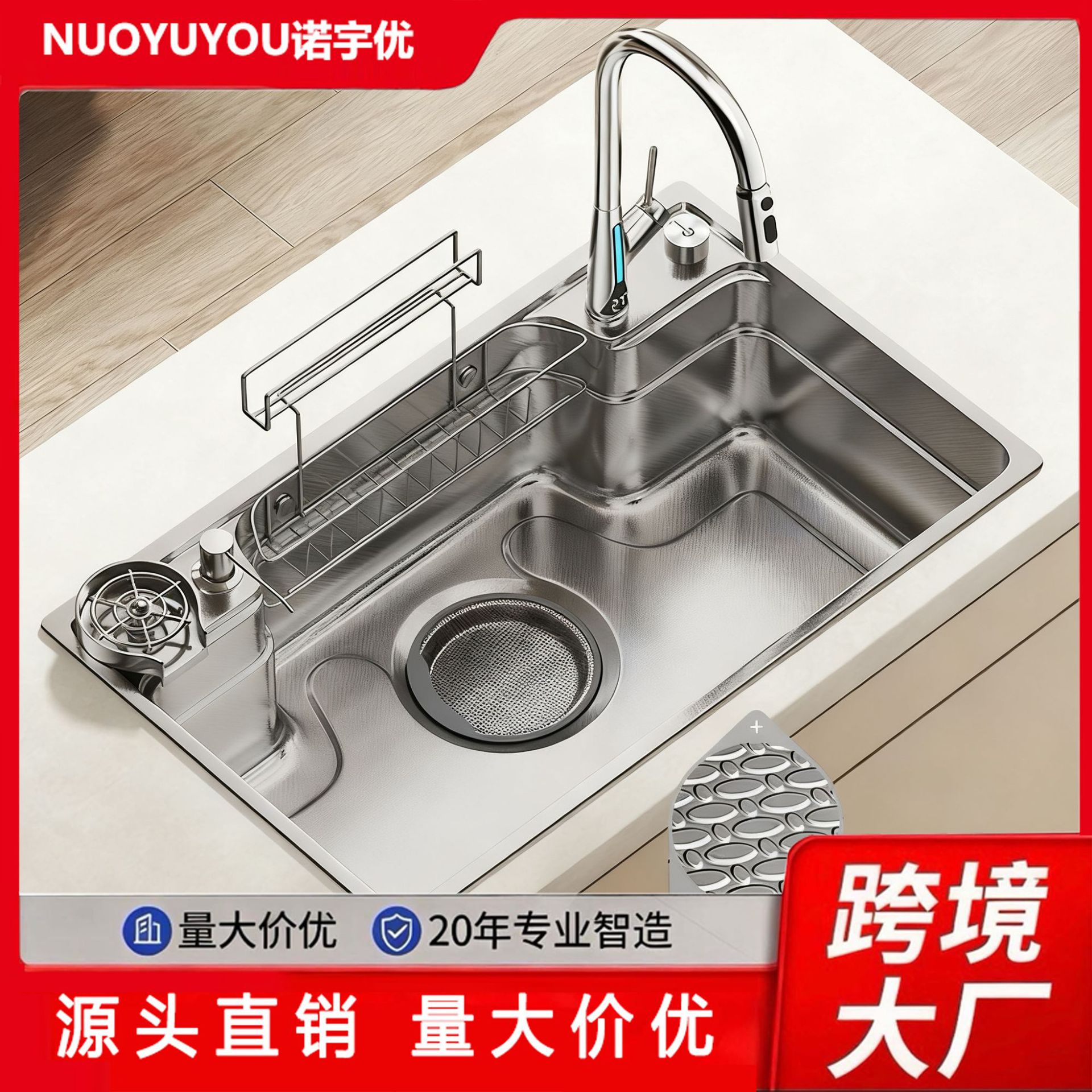 4.0mm厚板银色日式水槽小米压纹304不锈钢单槽洗菜盆洗碗盆