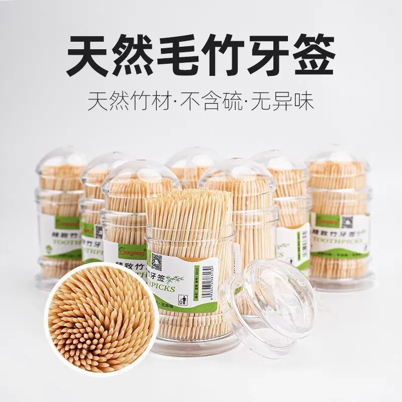 头层竹牙签一次性双头牙签家用水果牙签批发牙签盒