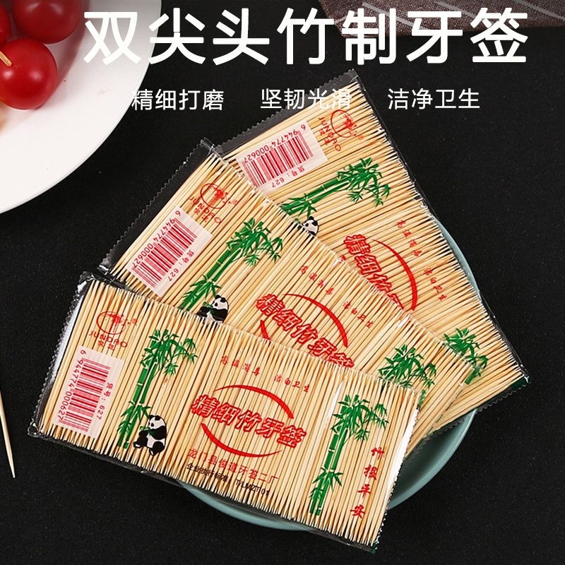 双头毛竹牙签一次性袋装水果签家用酒店饭店超市条装牙签双头牙签