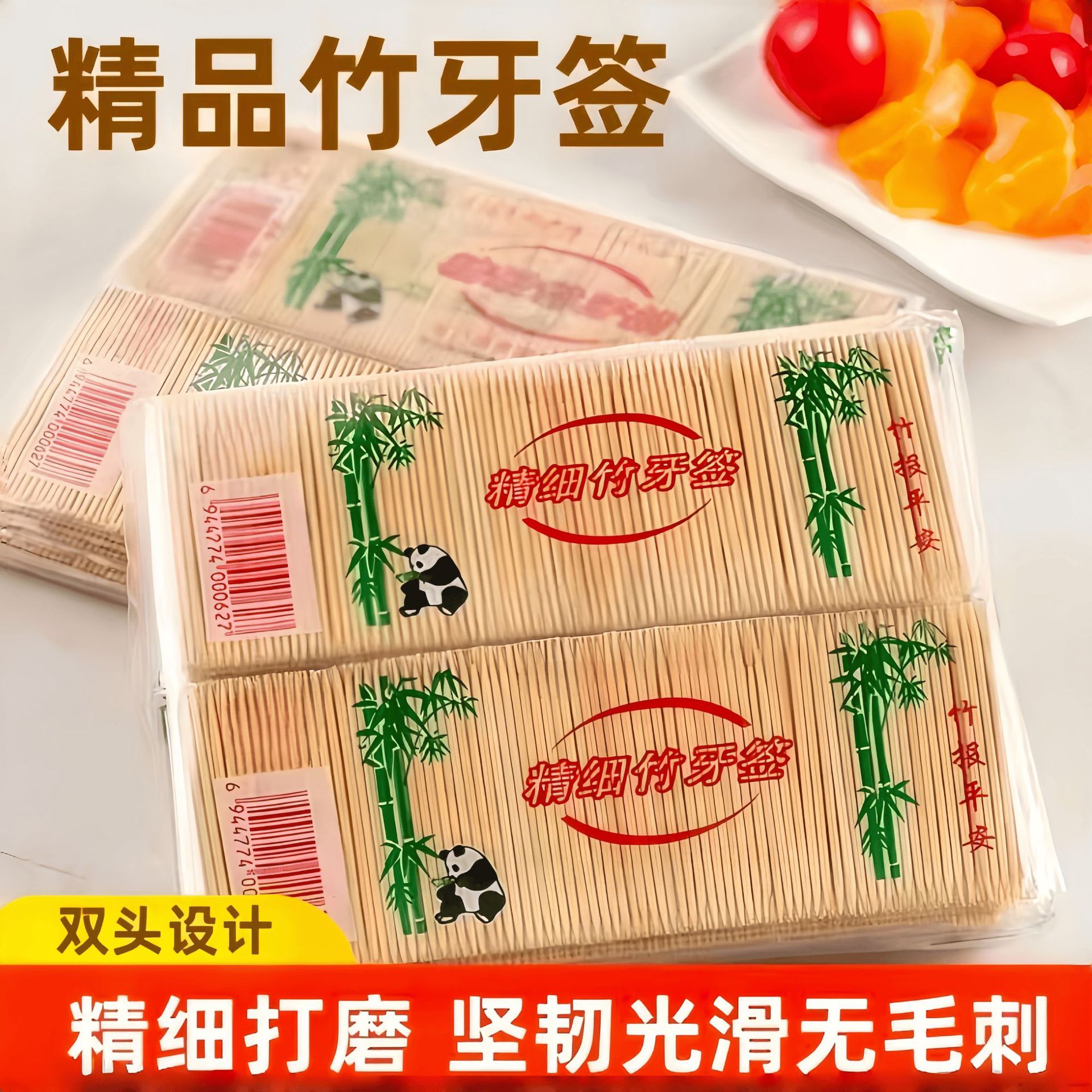 1000支一次性双头5包细牙签竹制细牙签棒家用便携餐厅散装水果