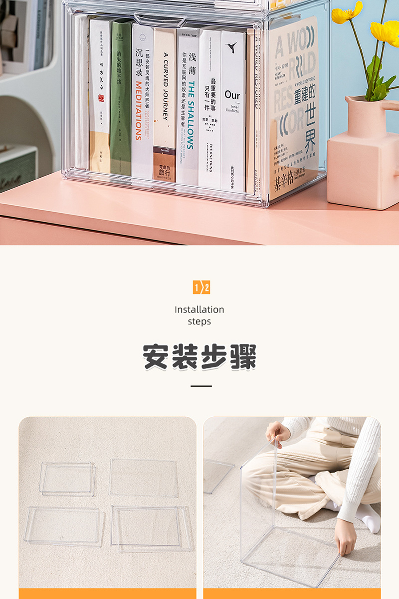 本収納ボックス透明磁気厚みのあるアルバムディスプレイキャビネットホームフロアシンプルな収納ラックアクリル本棚