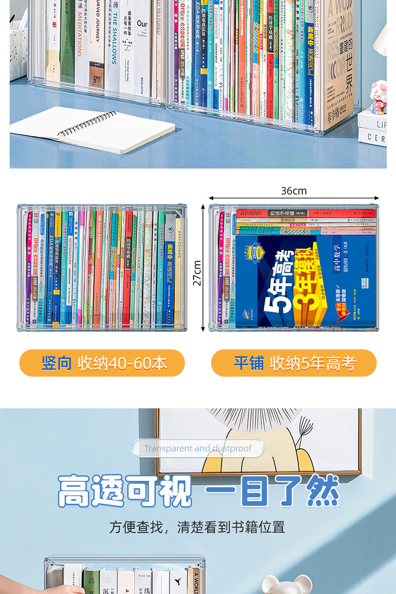 本収納ボックス透明本収納ボックスデスクトップ本棚収納アーティファクト児童学生アクリルディスプレイボックス
