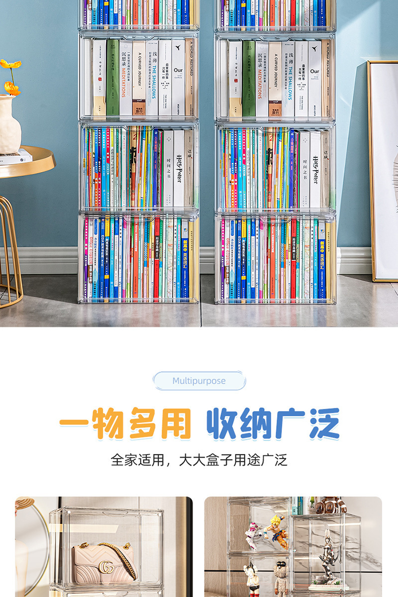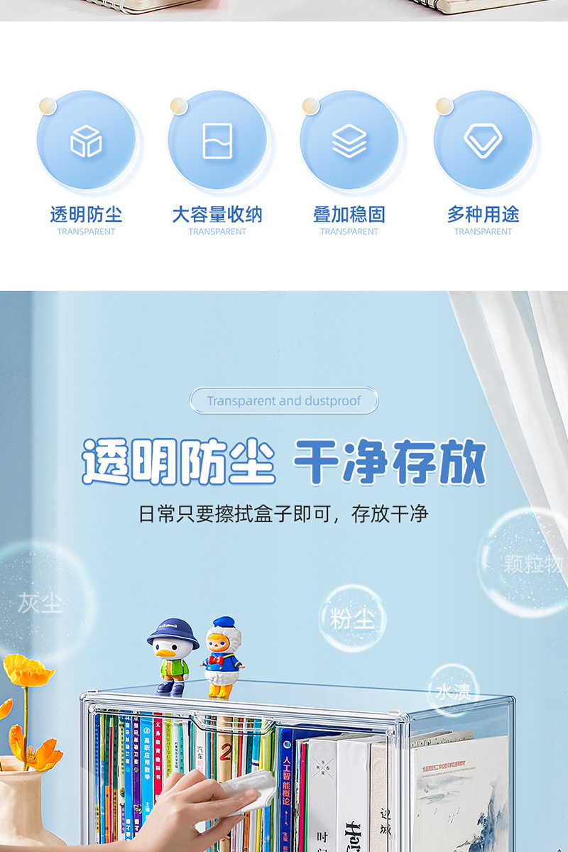 厂家书本收纳盒塑料儿童绘本书柜整理神器透明防尘书架桌面收纳架