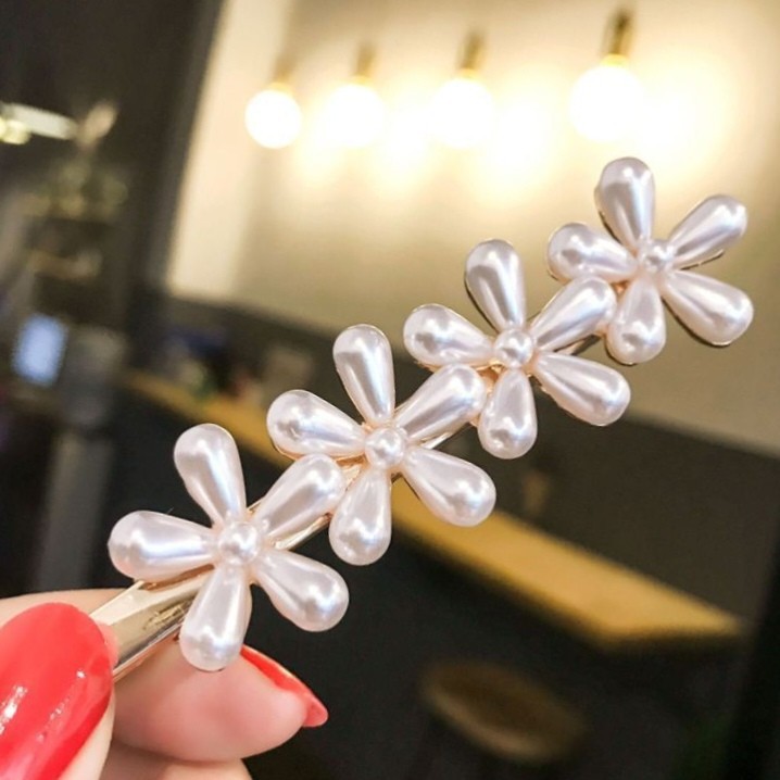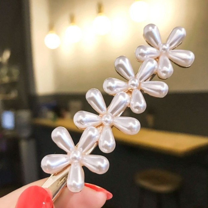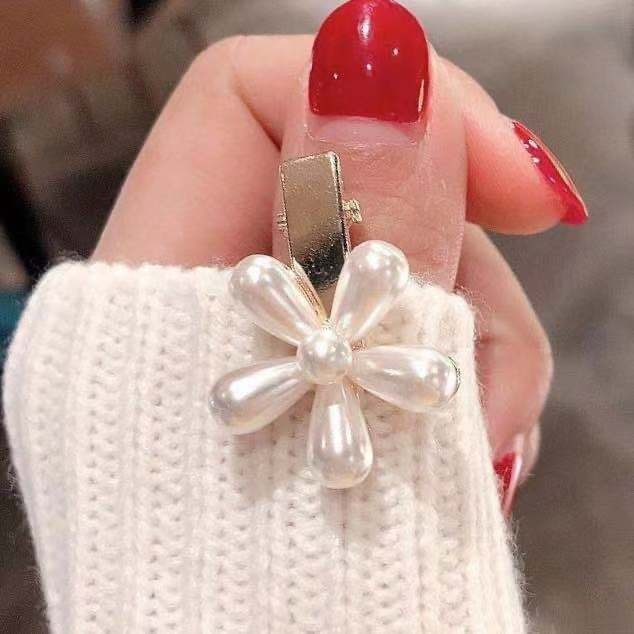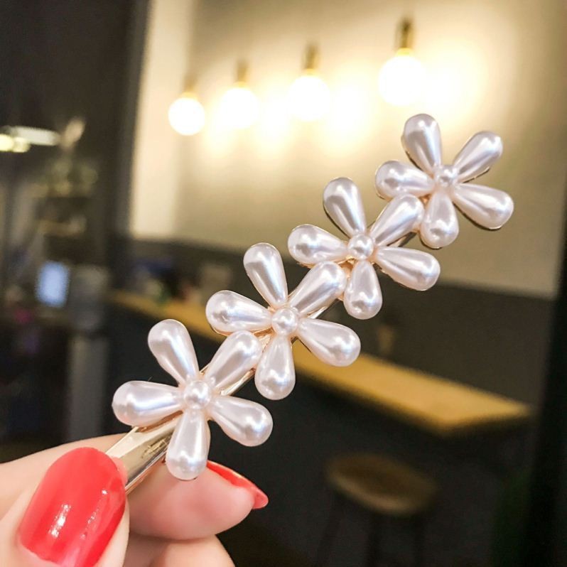 新款日韩风新款边夹女珍珠花朵鸭架发卡女学生甜美刘海发夹头饰