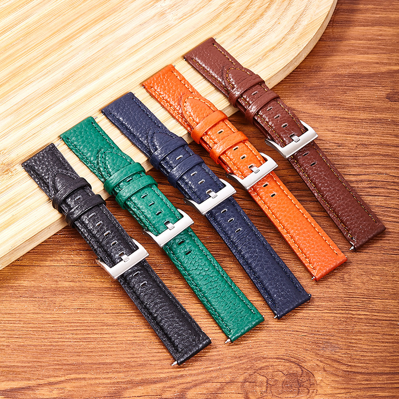 腕時計バンド真皮6色レイシ紋高芯柔らかい耐摩耗性牛革バンド20mm 22mmスポット卸売り