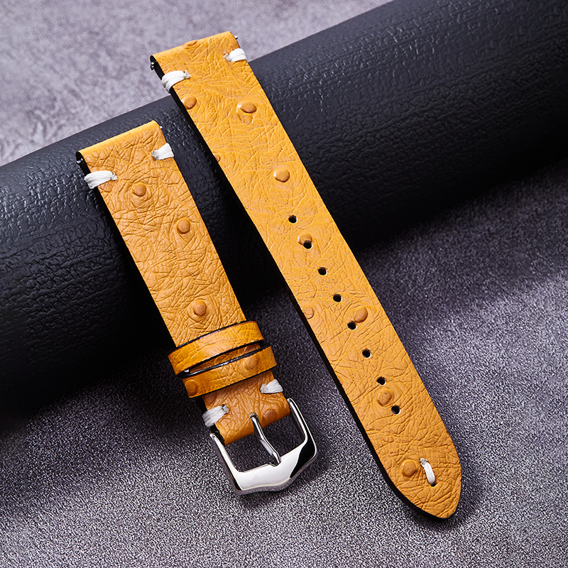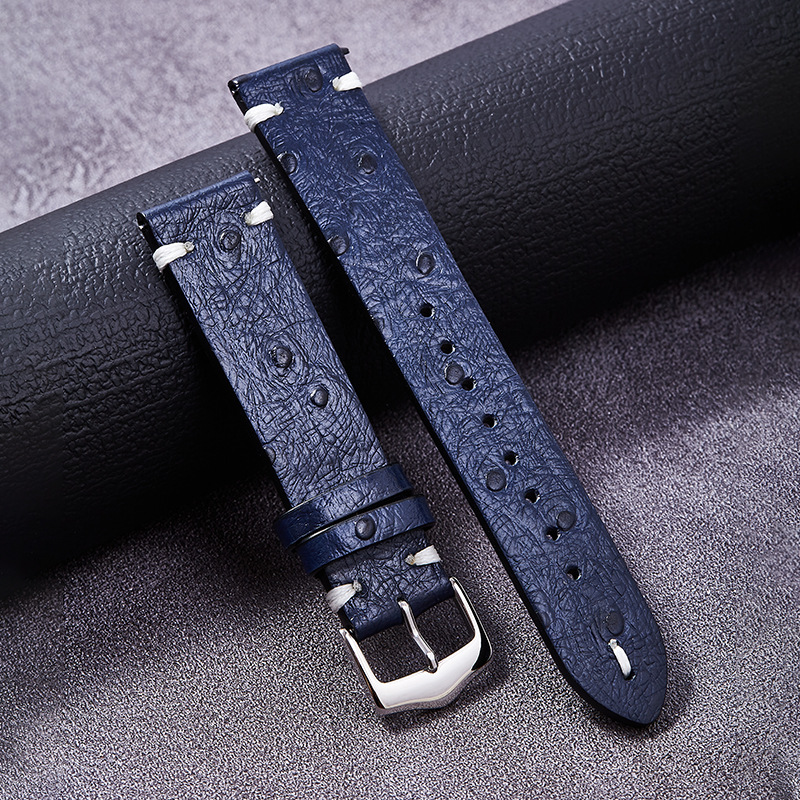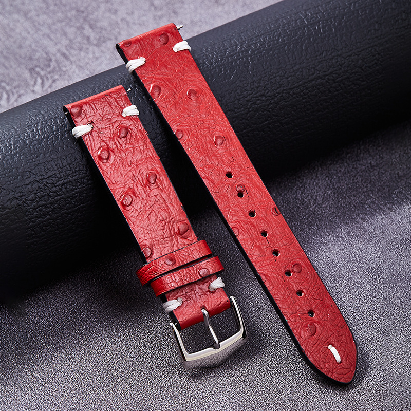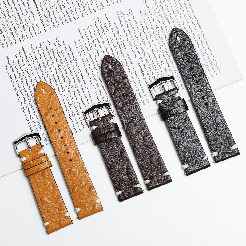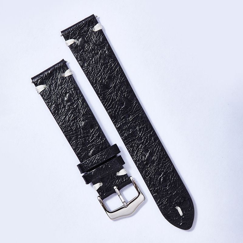 智能手表带通用鸵鸟纹牛皮切边双面头层真皮表带快拆耳针扣表链