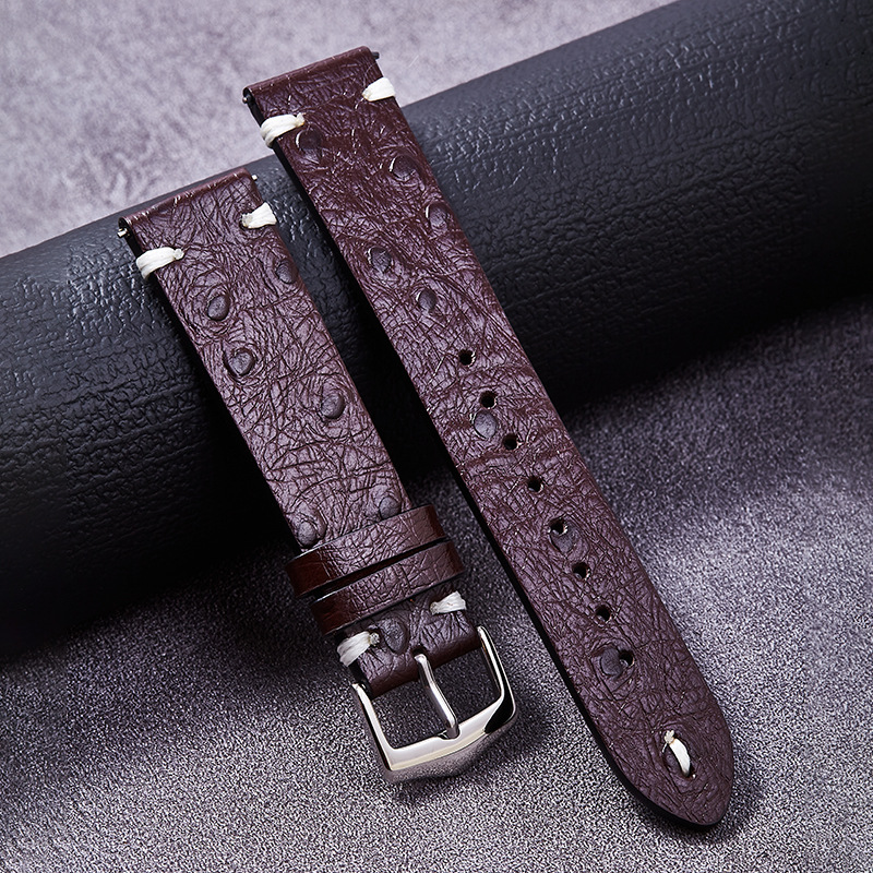 卸売在庫あり 新品 ダチョウ柄 本革時計バンド アクセサリー 手縫い Xiaomi Redmi 2/4/5世代対応
