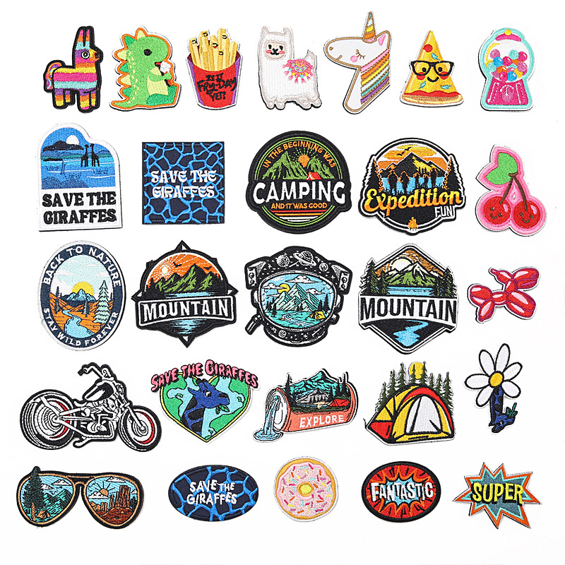 屋外風景刺繍布貼り恐竜ホットメルト縫製アイロン刺繍パッチ服装帽子刺繍布貼り