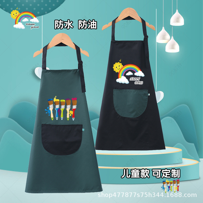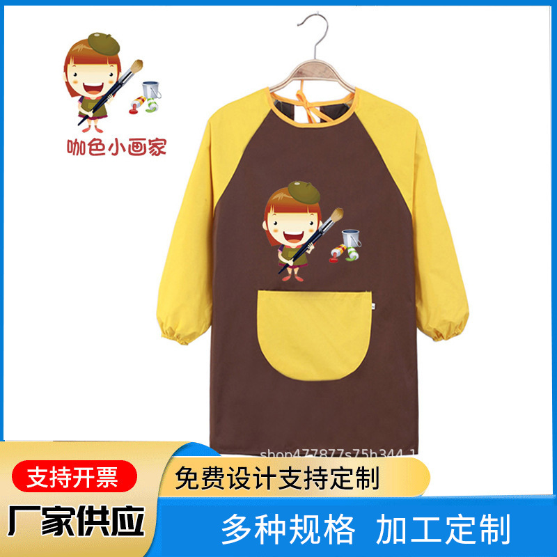 卸売り防水児童ノースリーブエプロン画室画衣幼稚園広告エプロン印字画カバー