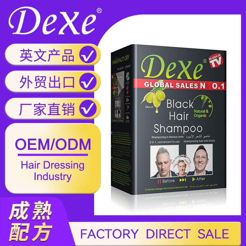Dexe一支黑跨境英文染发剂植物黑色盖白发外贸泡泡一洗就黑染发膏
