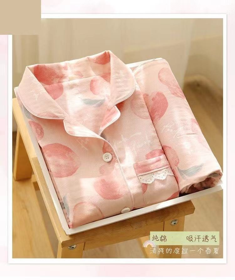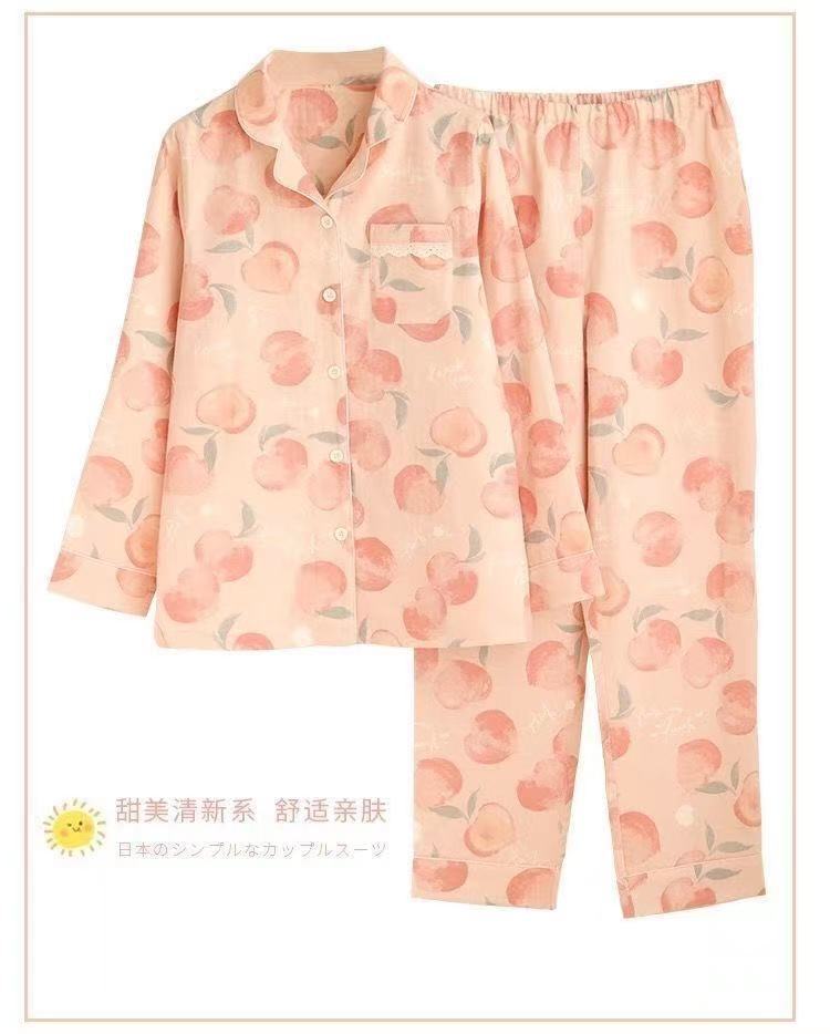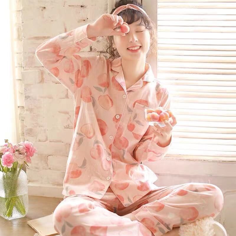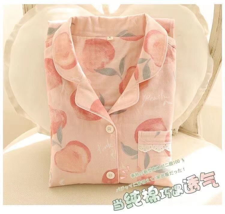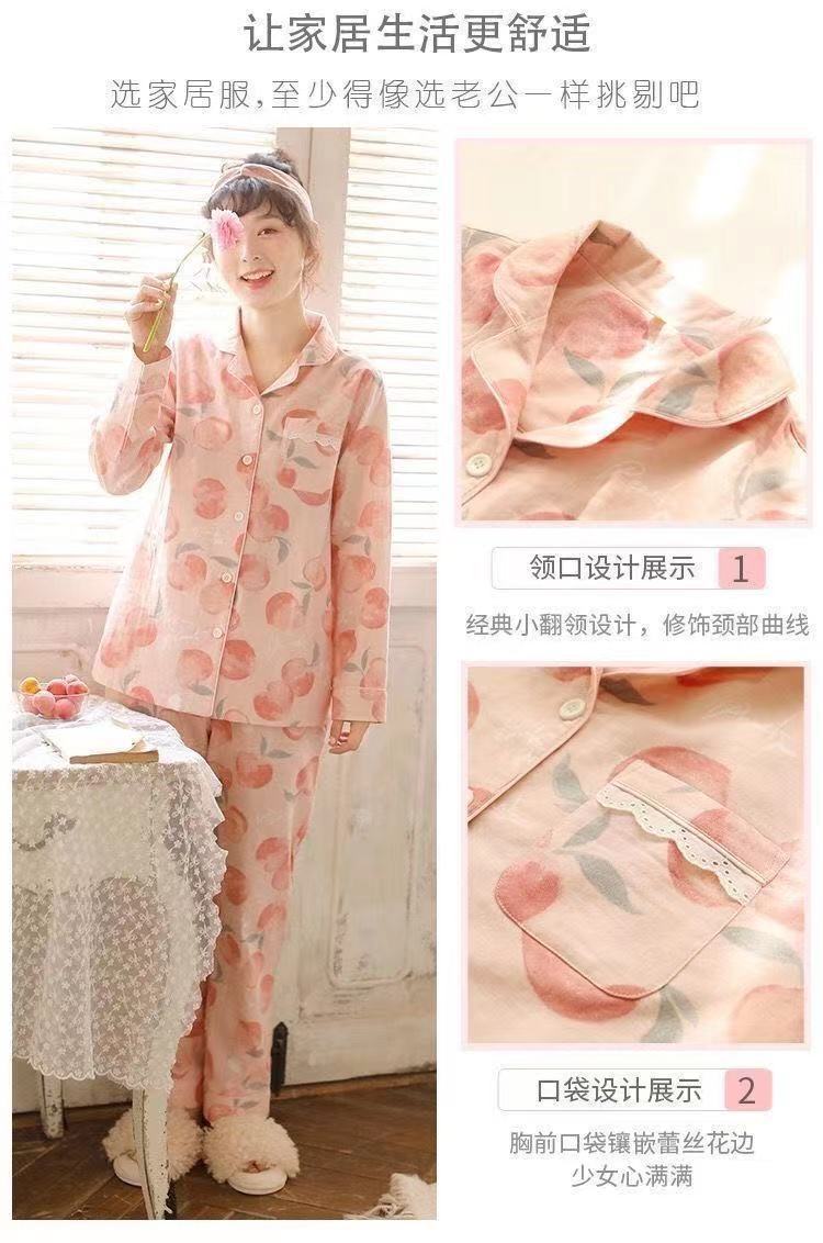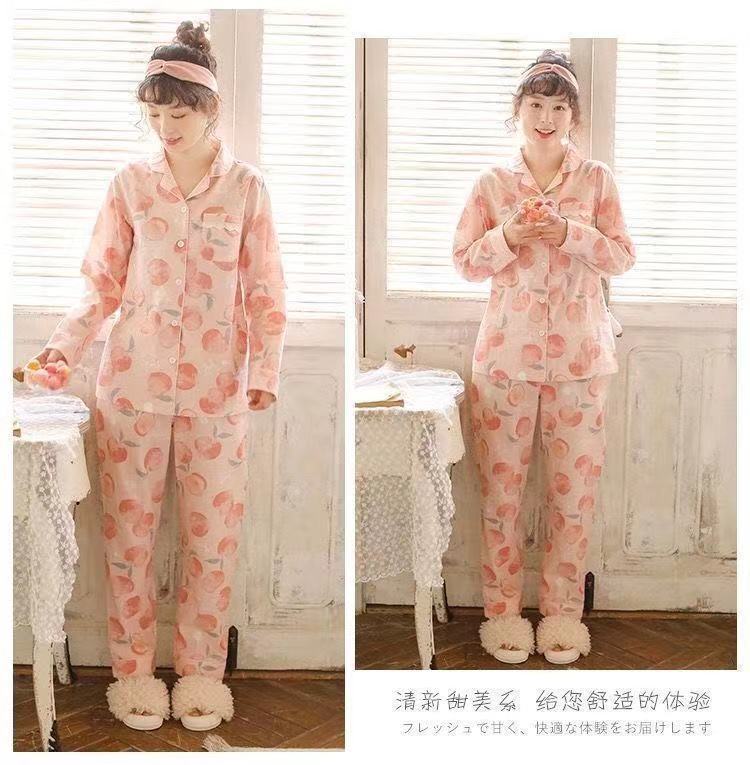 100% 純綿パジャマレディース春秋長袖純綿大きいサイズ秋冬薄手ルームウェアセット