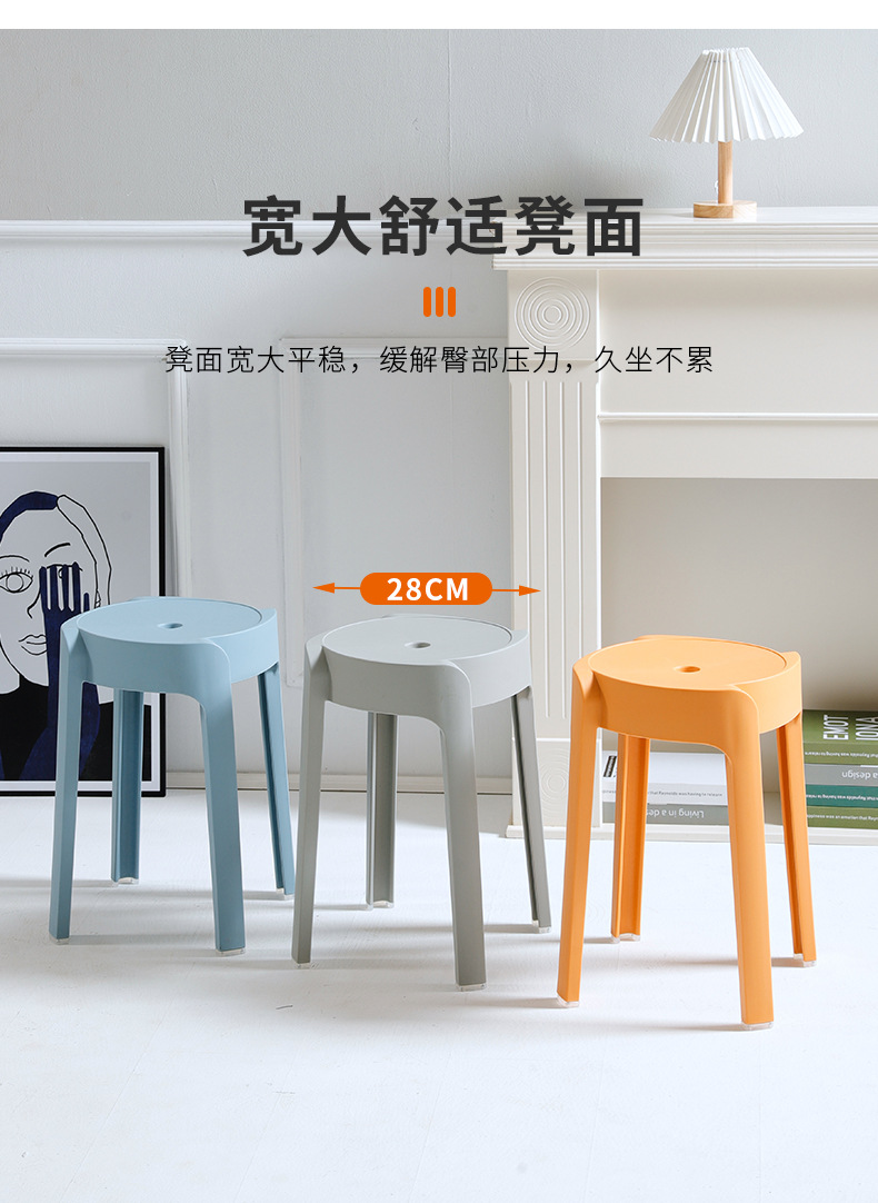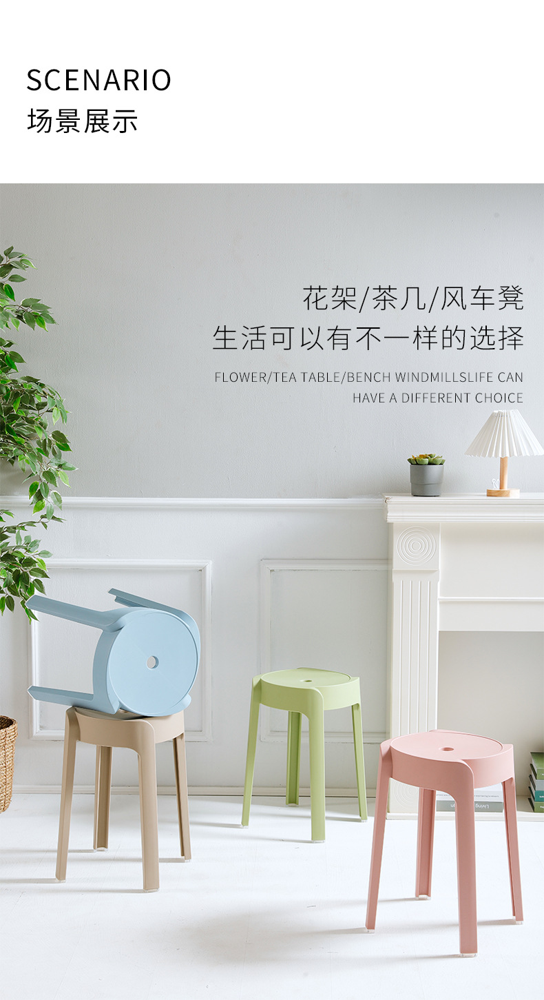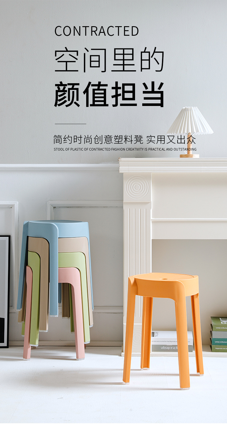塑料凳子家用加厚现代简约可叠放久坐舒适高圆凳客厅餐椅风车凳