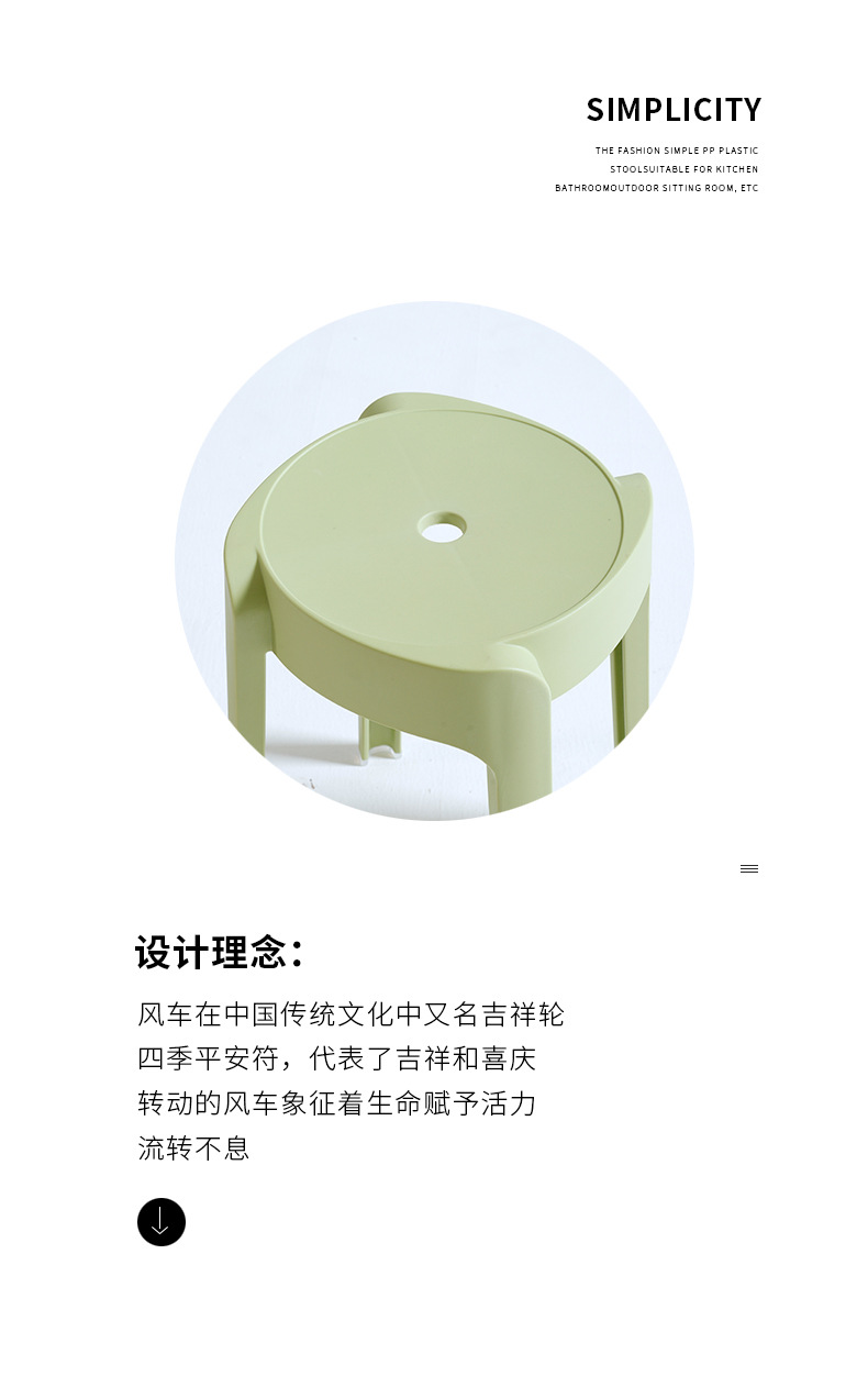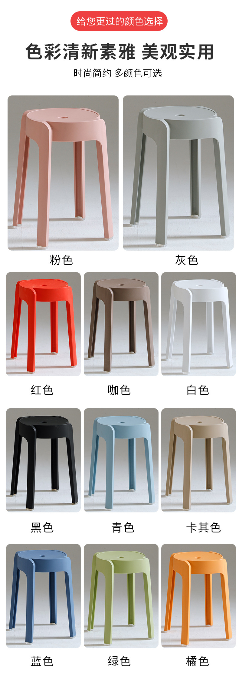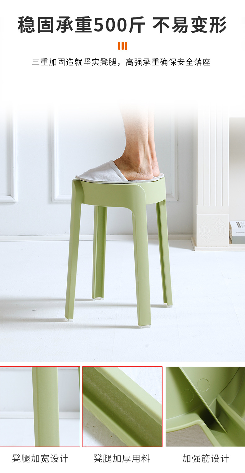 塑料凳子家用加厚现代简约可叠放久坐舒适高圆凳客厅餐椅风车凳