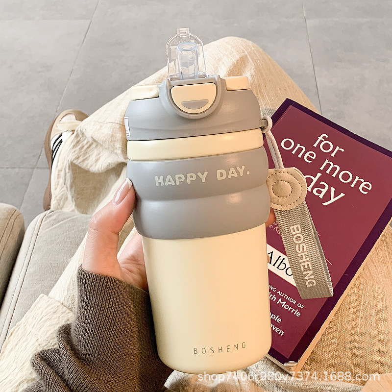 ストロー保温カップ女子高颜値316ステンレスコーヒーカップ随行携帯オフィス二重飲水カップ