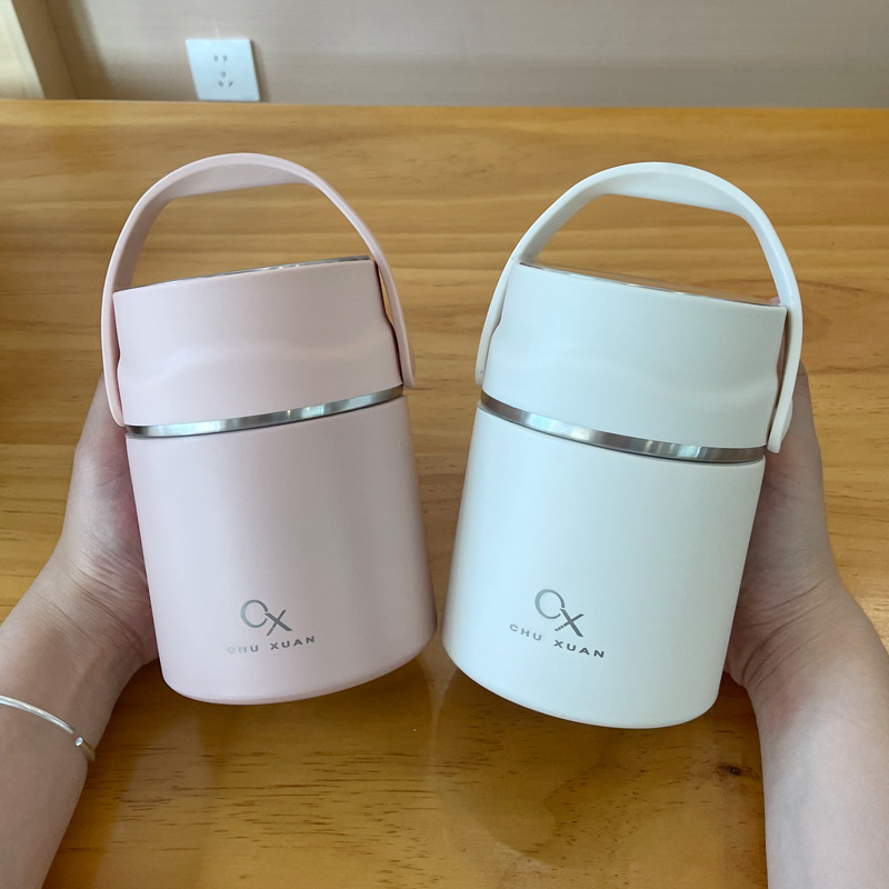 韓国版シンプルなクリーム系の煮物保温カップ多機能弁当箱の煮物ビーカーのプレゼントコップの携帯用の煮物缶