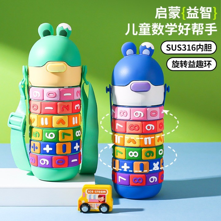 创意益智积木旋转数字316保温杯儿童防摔吸管杯带可爱大容量水杯