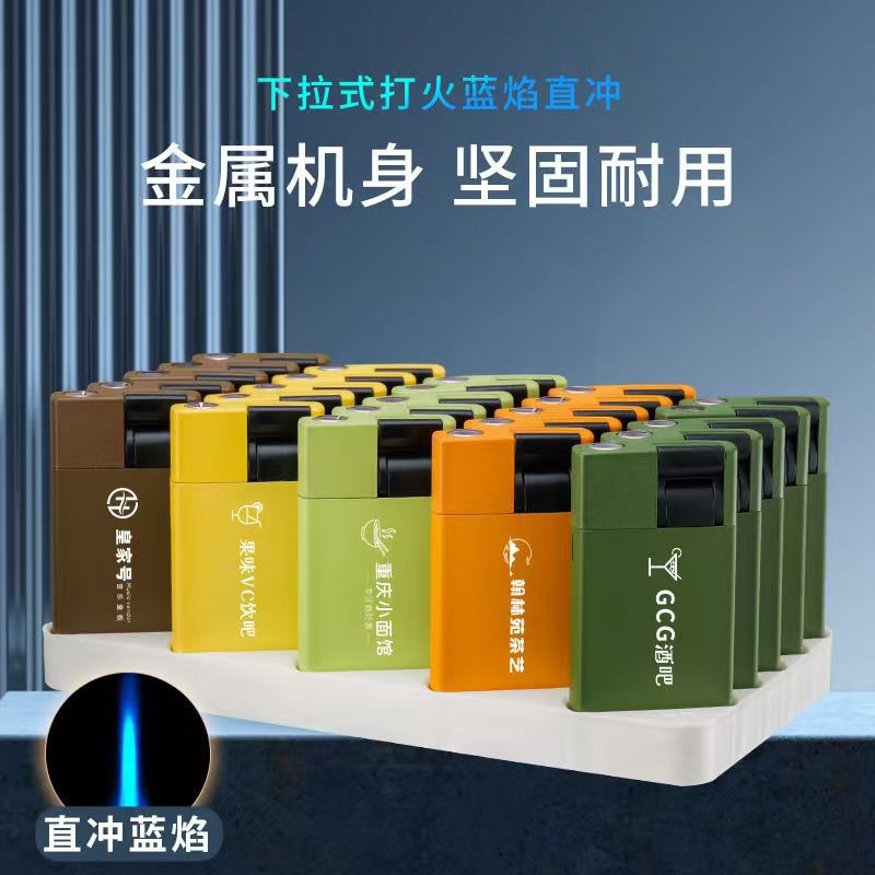 渐变糖果色超越凡品蓝火直冲金属防风定 制打火机广告logo耐用