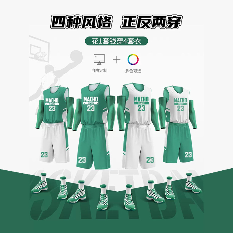 両面バスケットボール服セットトレーニング試合のユニフォームは通気性があります。