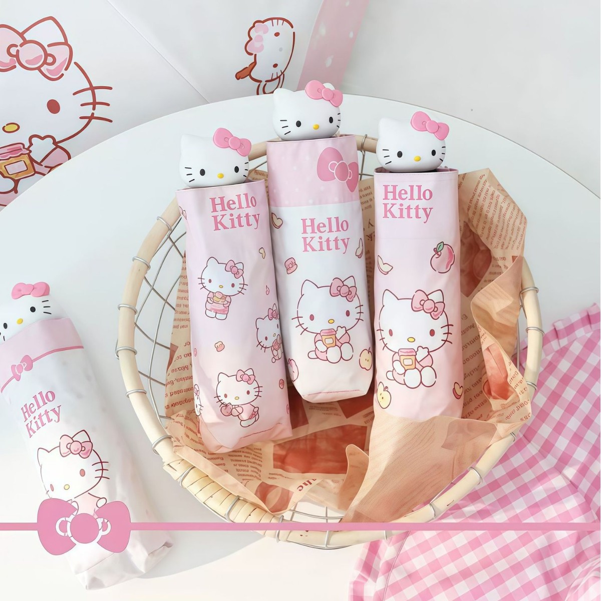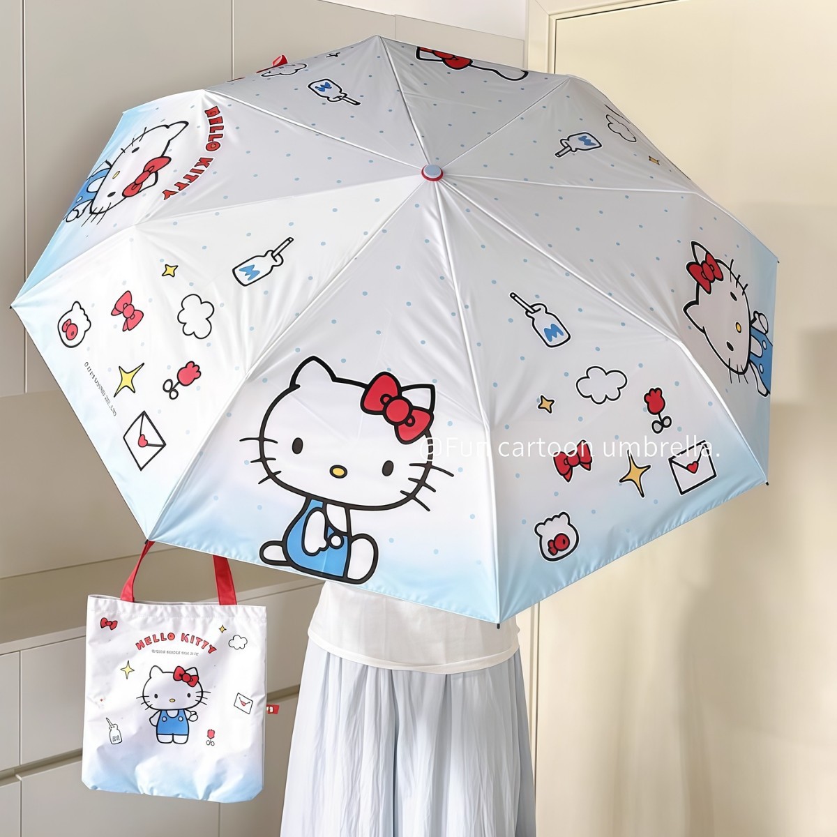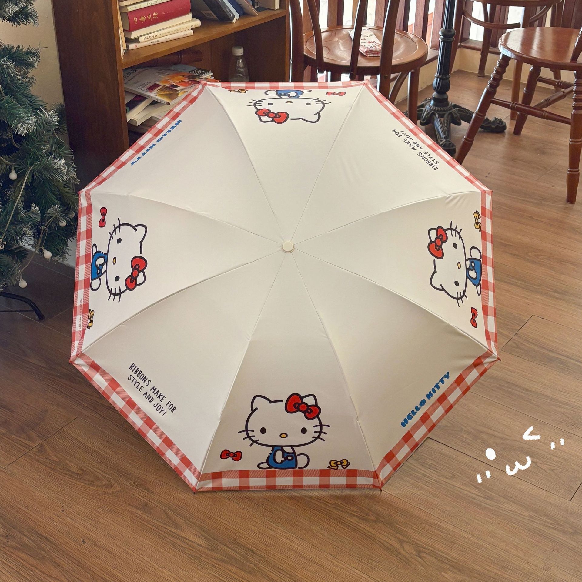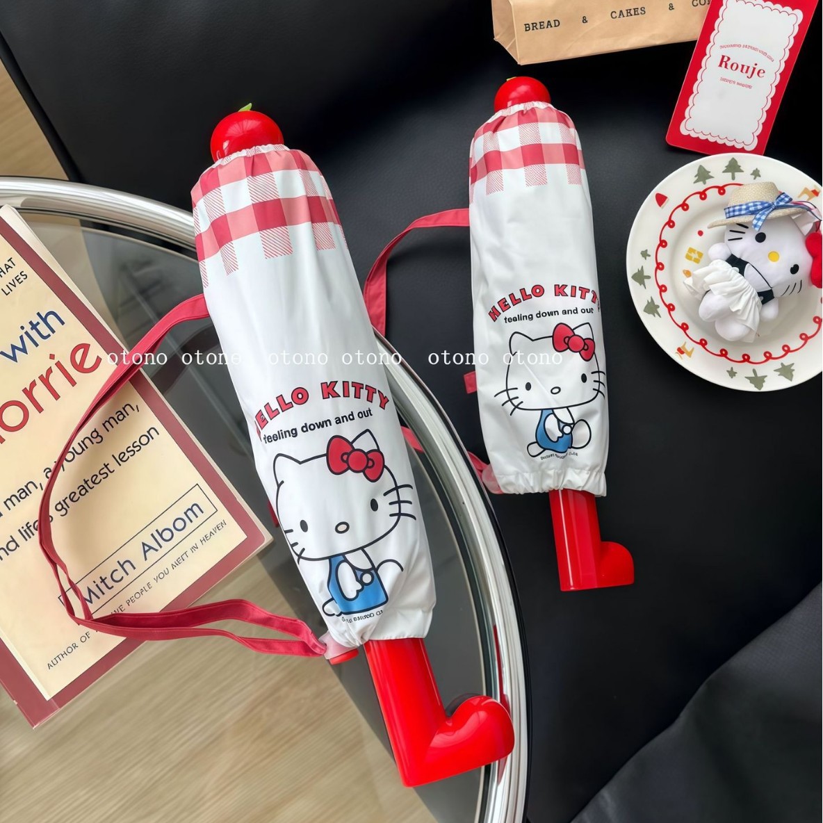 ハローキティ 全自動傘 晴雨兼用 ビニール製日傘 折りたたみ式 紫外線カット かわいい日傘