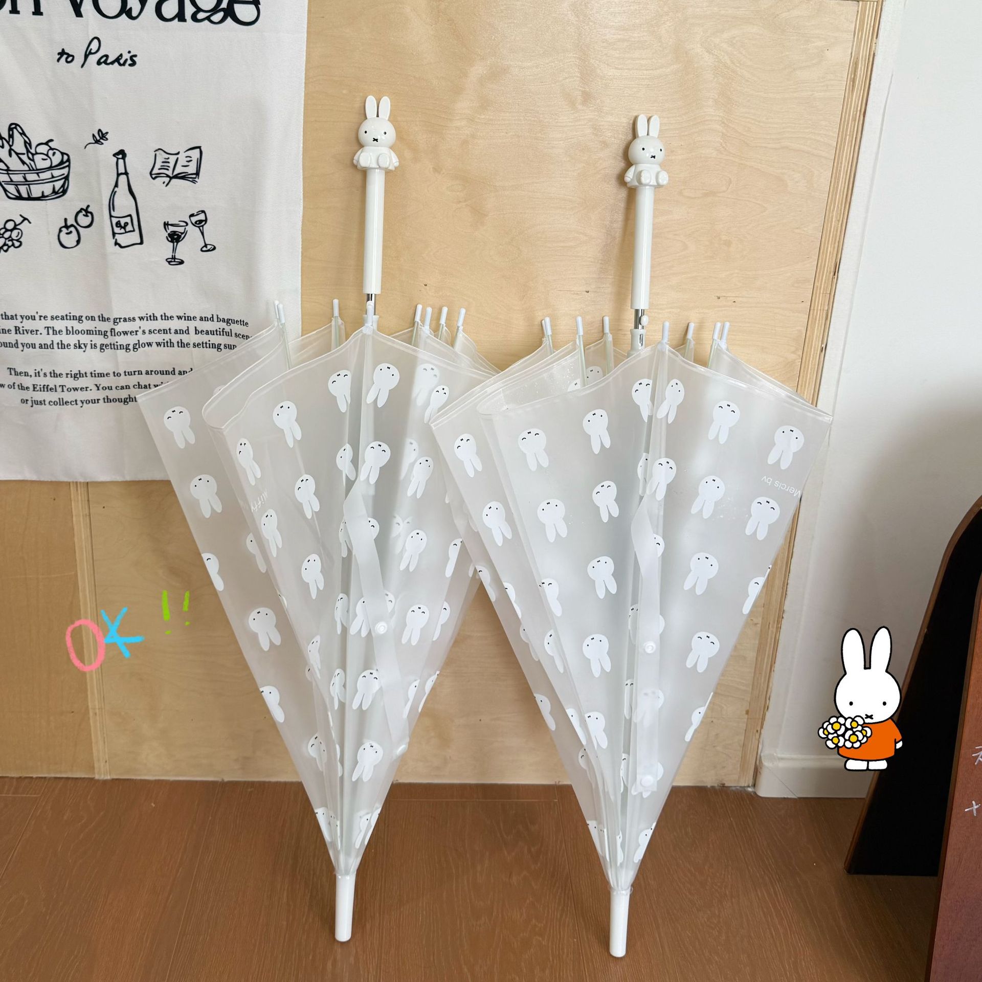 スポット正規品認定ミッフィーウサギつや消し透明長柄傘かわいい人形ヘッド傘ハンドル厚みのあるストレート傘