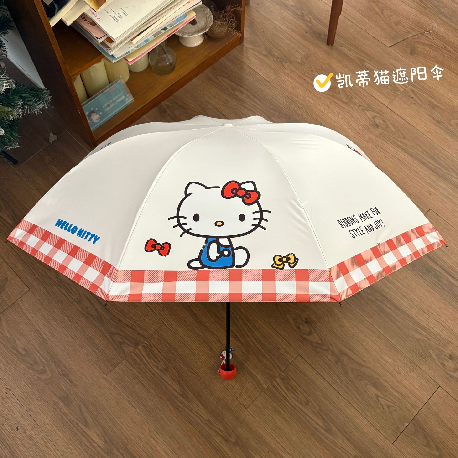 ハローキティ サンリオ純正 かわいい漫画柄 二役 50% off 手動 UVカット ブラックラバー 日よけ傘