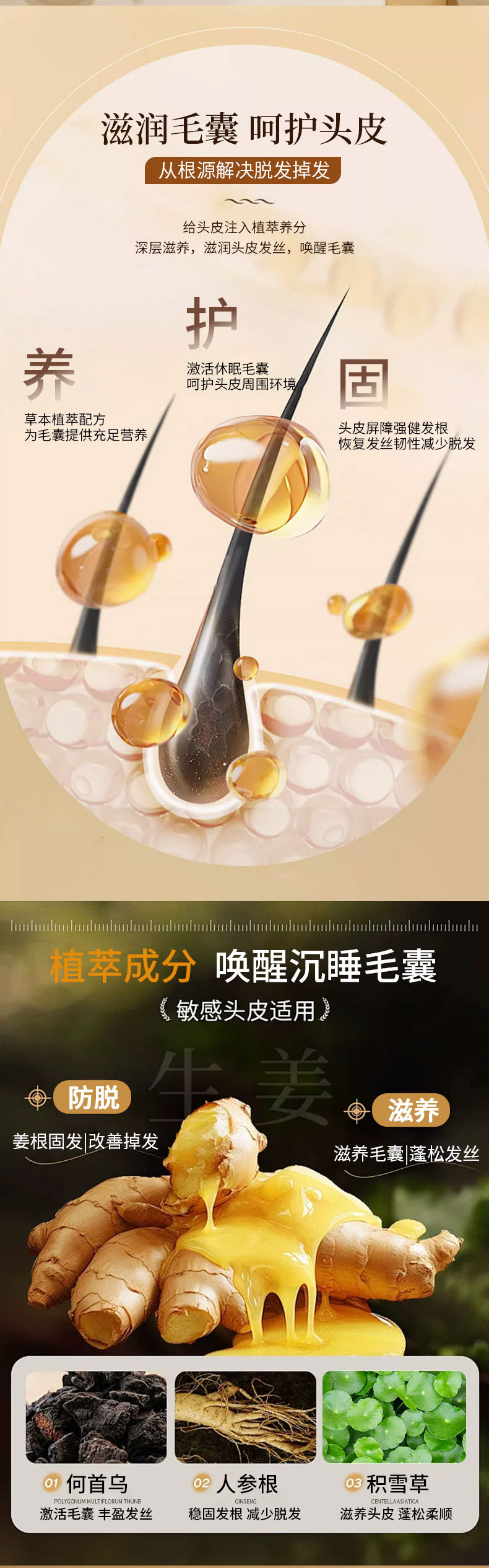 玫黛琳防脱固発精華液何首烏強靭発根改善発植物養発育発液卸売り