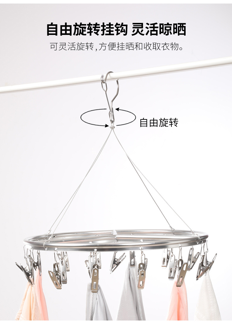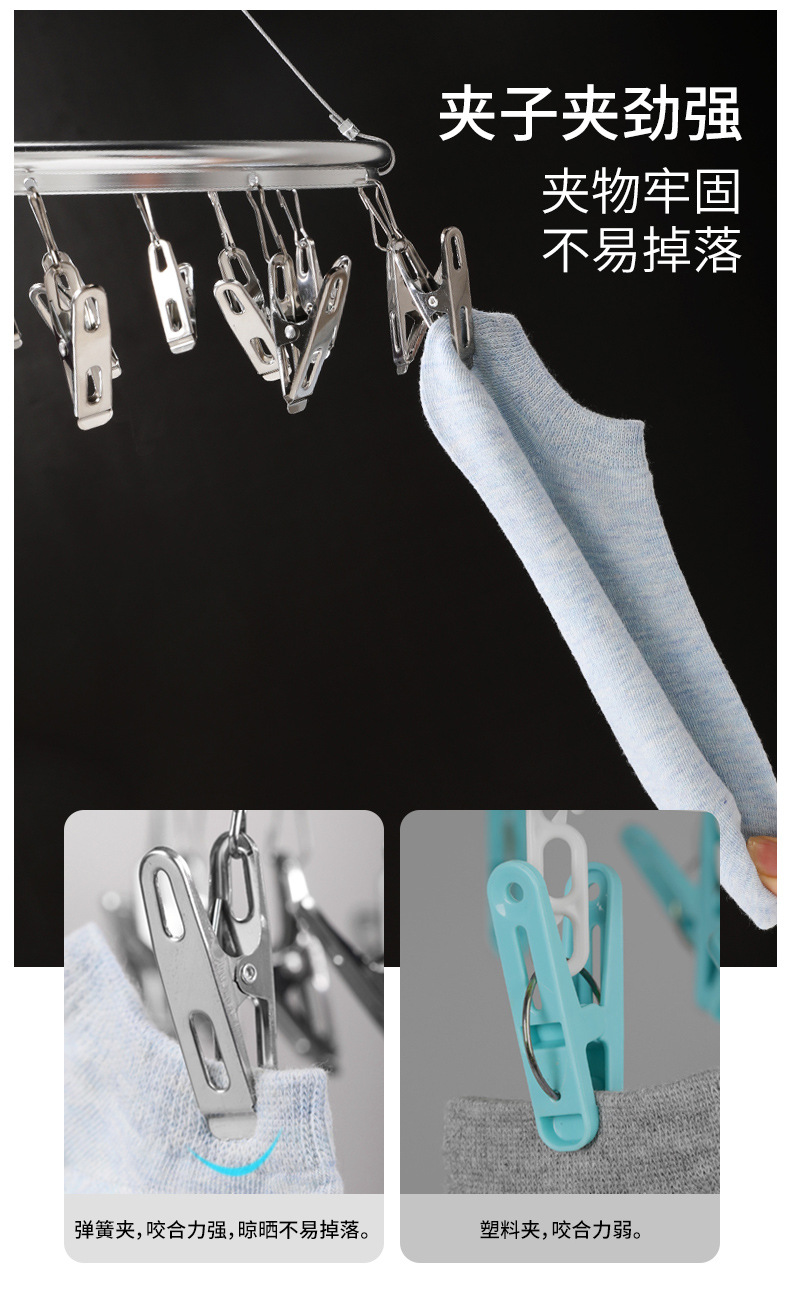 美丽雅晾袜子衣架多夹子防风家用特粗不锈钢晾衣夹挂钩神器晒衣架