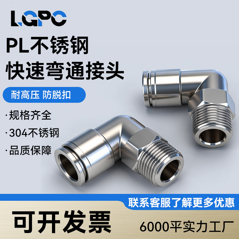 304ステンレススチールワンタッチ接続ガス管継手気動快速継手PL8-02直角曲げ高温高圧耐食性