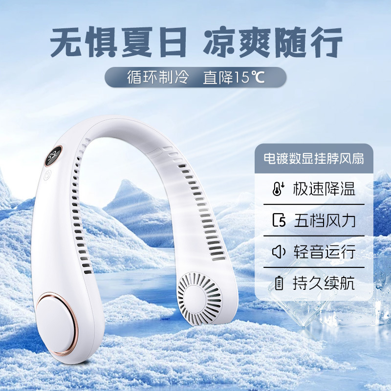 新型首掛けファンUSB充電小型屋外携帯用軽音タービン首首無葉ミニ小風