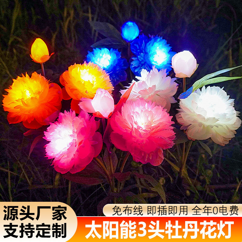 新商品クロスボーダー太陽光牡丹花灯屋外花園庭シミュレーション花七彩装飾芝生灯床挿灯