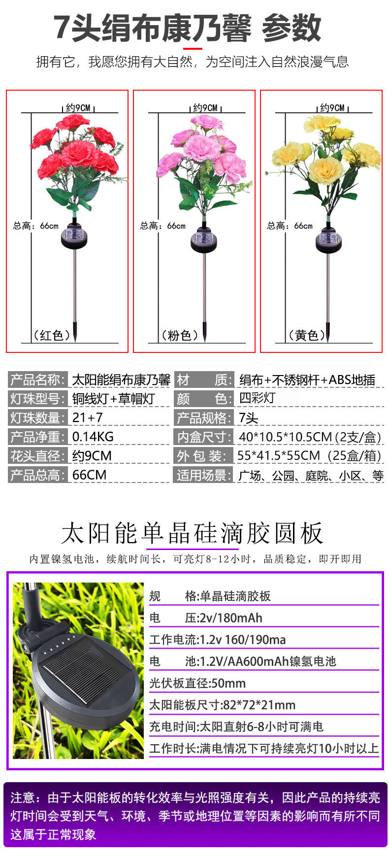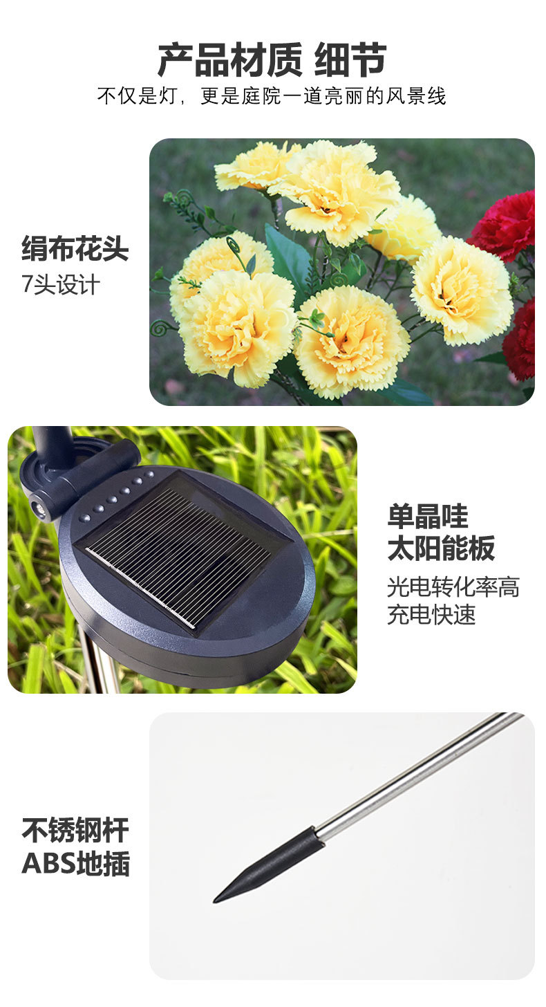 国境を越えたアマゾン太陽エネルギー7頭カーネーション花灯屋外庭園芝生景観防水led雰囲気灯