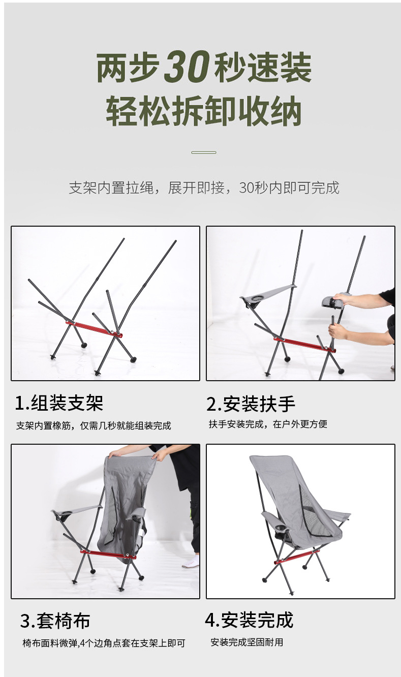メーカーは、屋外キャンプ用の全アルミニウム製ハイバックアームレスト付き折りたたみ椅子、アウトドア旅行用リクライニングチェア、ハイバックチェアを供給しています。