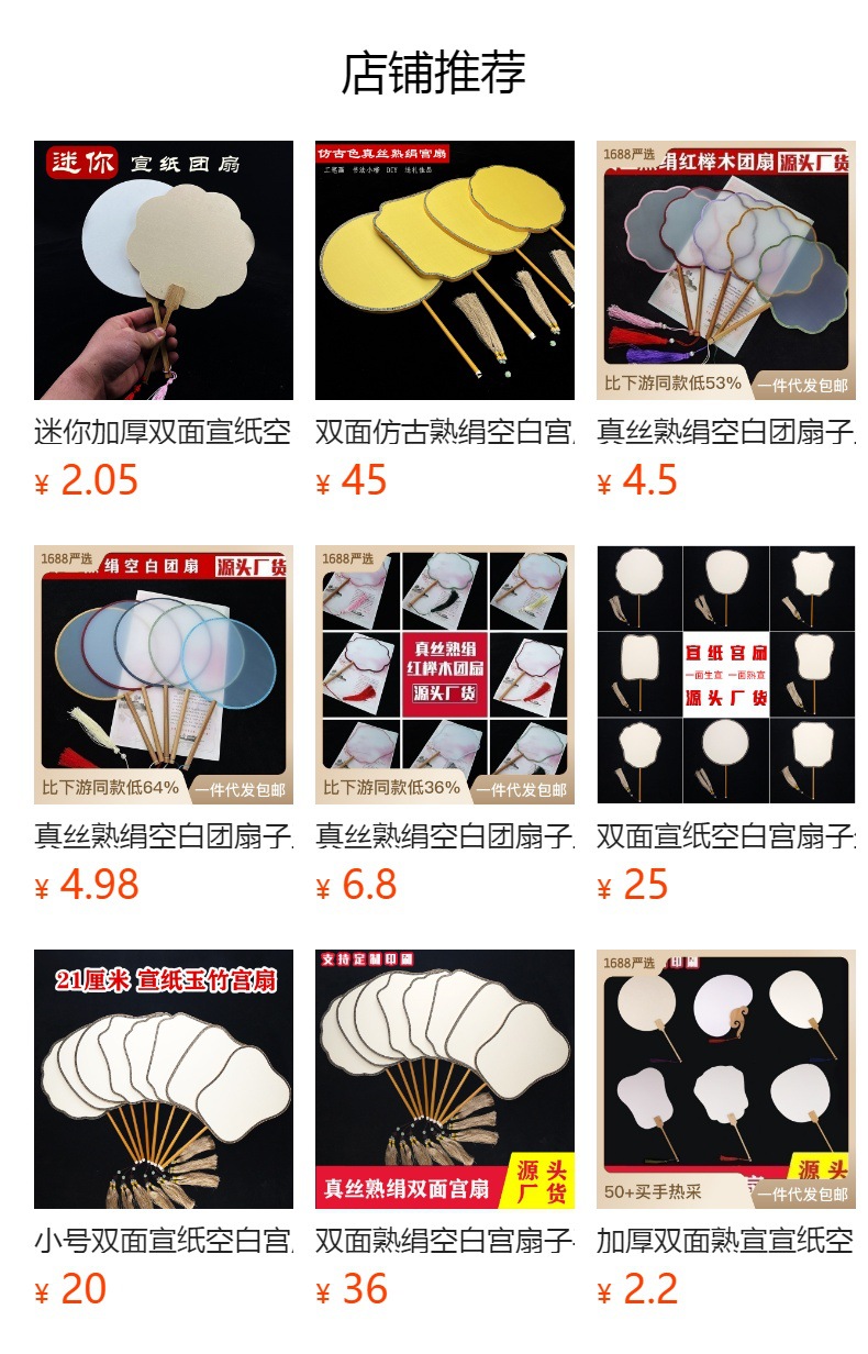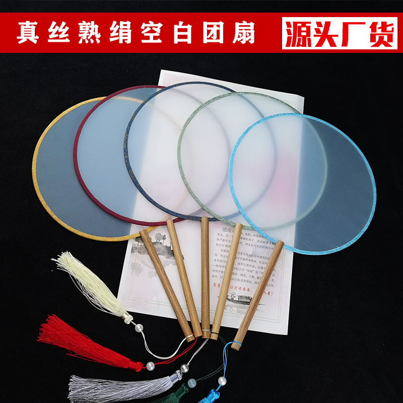 絹布団扇空白創作扇国画工画水彩画宮扇diy手描き円形扇面古扇風機