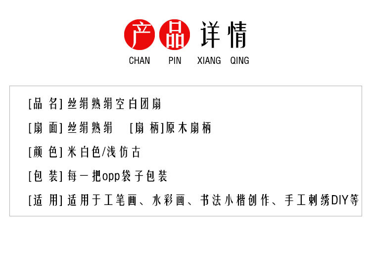 シルク熟絹空白団子工筆小楷書手描き国画diy刺繍中国風宮扇長柄扇面
