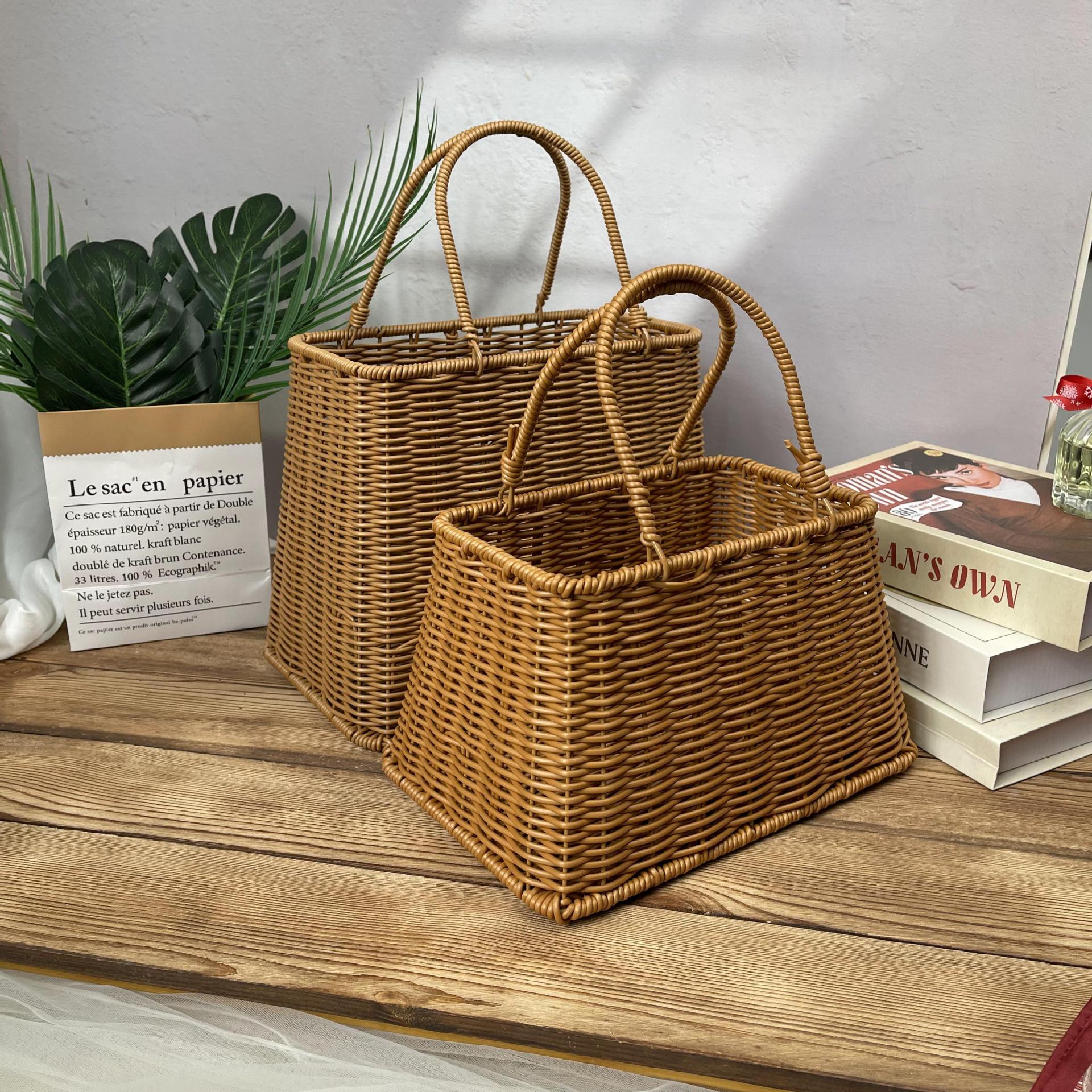 模造籐手提げ収納ボックスレトロ飾りギフトボックス編み籐箱撮影道具お土産ボックス籐編みボックス