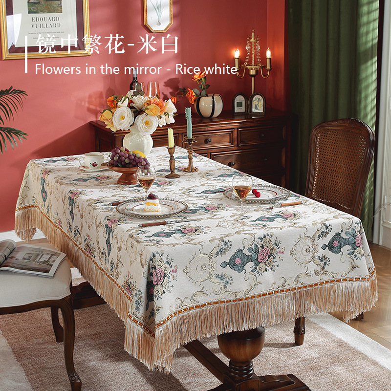 工場直販ヨーロッパのライト高級シェニールジャカード刺繍タッセルテーブルクロスベッドエンドタオルリビングルームコーヒーテーブルテーブルクロステーブルフラグ