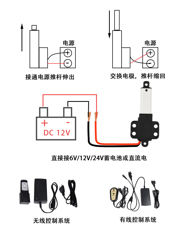 100mmストローク小型大推力多仕様DCマイクロ電動プッシュロッド開閉用電動プッシュロッド