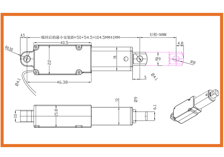 200mm 6000N 直流电动推杆 静音 护理床电推杆