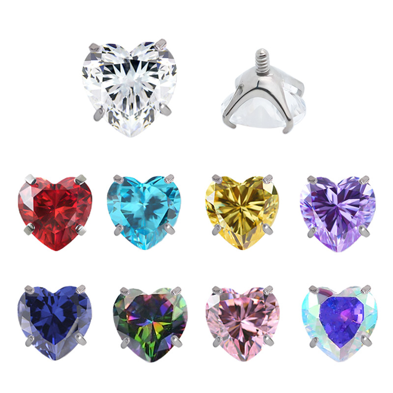 316L ステンレス鋼リップネイル 1.2 ミリメートルロッドハート型スターラウンドスクエアジルコンリップネイルハート型ジルコン