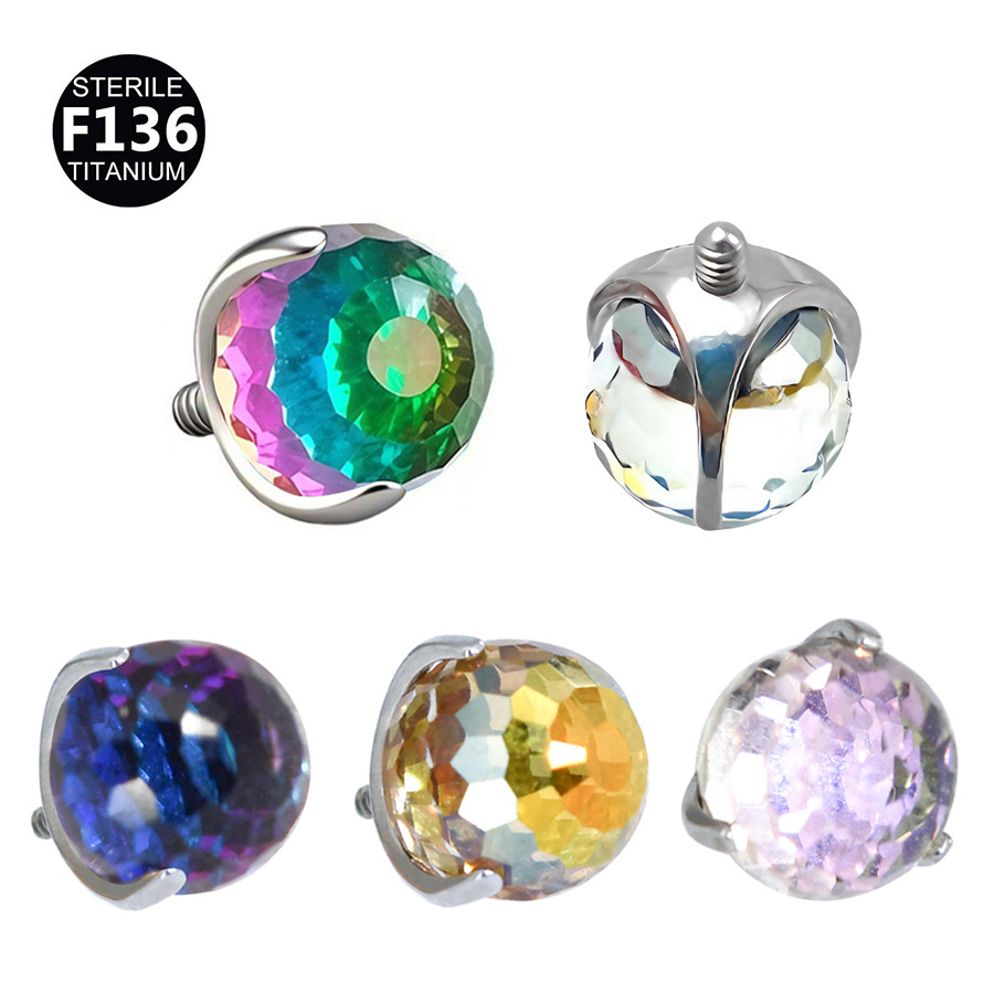 F-136钛合金6mm爆款渐变色蹦迪球耳钉唇钉穿刺饰品DIY夜店饰品
