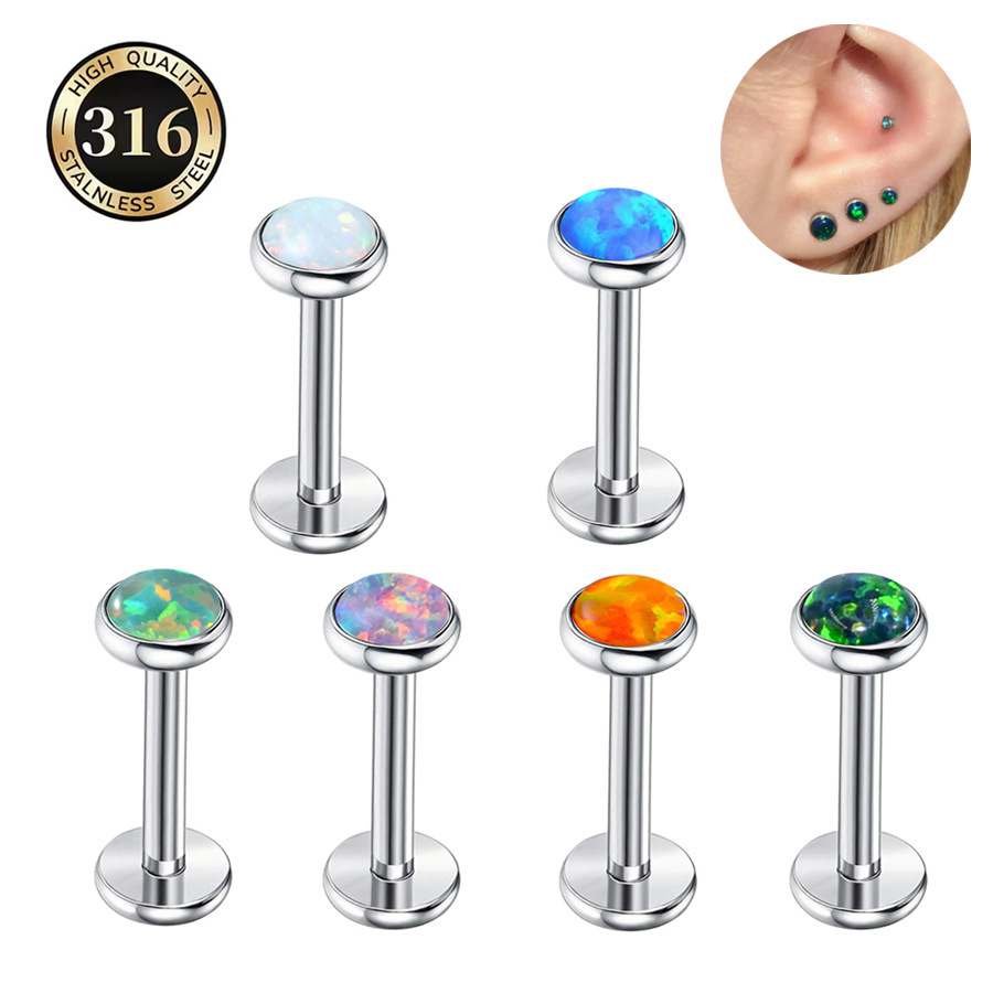316L不锈钢 1.0的牙口内螺纹澳宝唇钉耳钉耳骨钉人体穿刺饰品