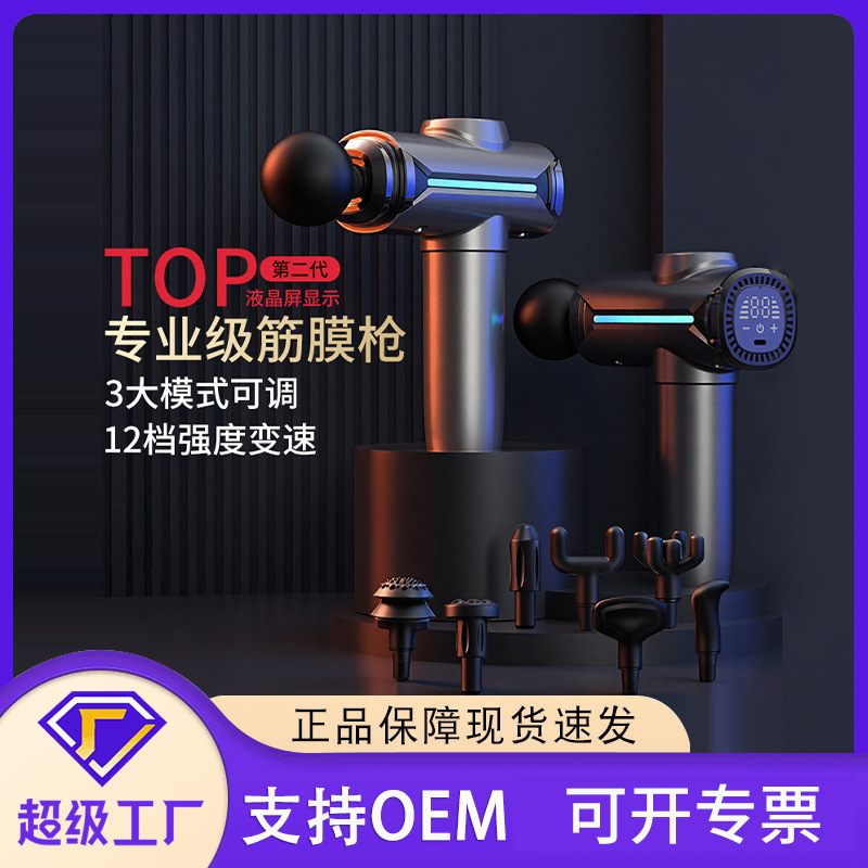 跨境8头筋膜枪专业级智能数显电动冲击肌肉健身器材深放松按摩器