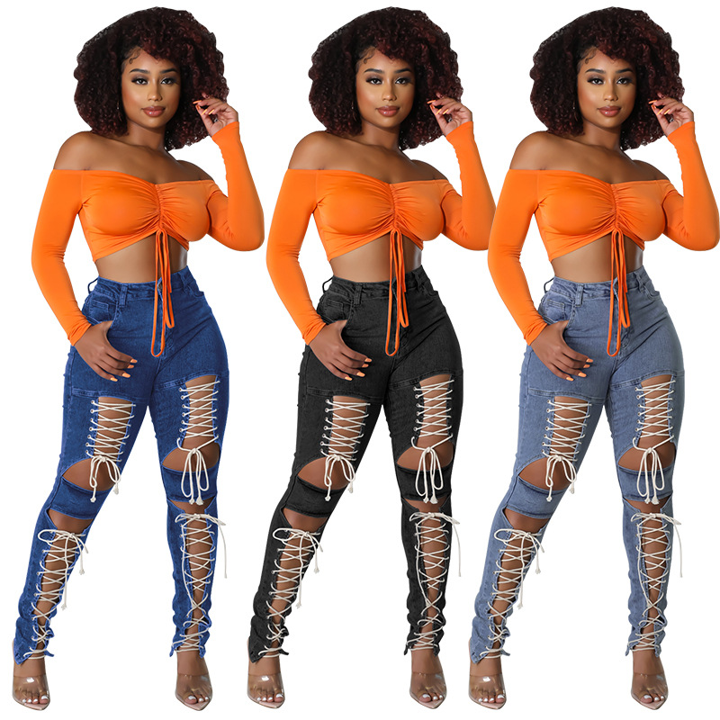 218189欧米のクロスボーダー婦人服夏の新型鶏の目は縄のセクシーなジーパンのアマゾンの新商品の源工場を着ます。