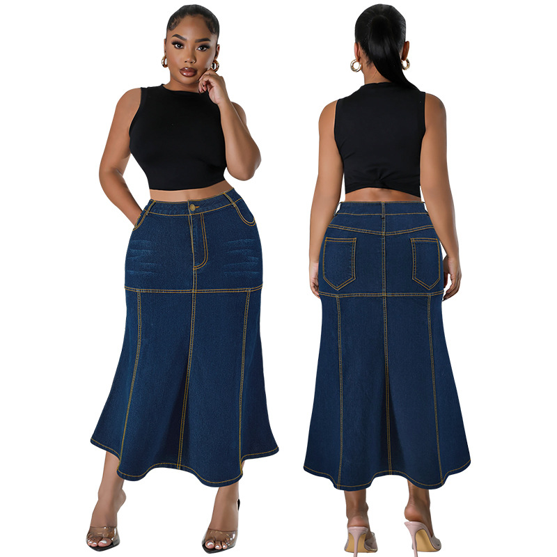 218630跨境大码女装新款牛仔休闲长款半身裙源头工厂直销